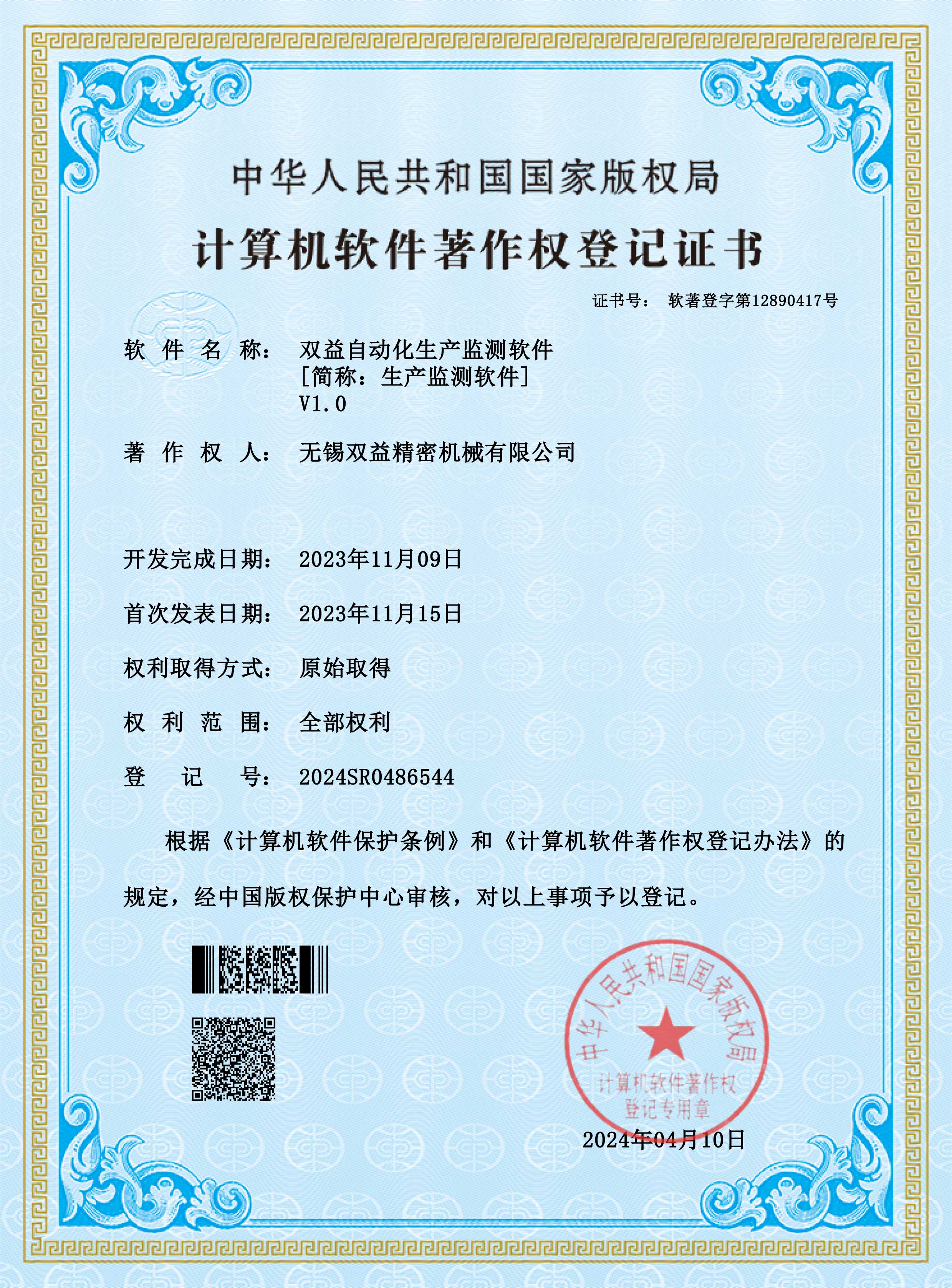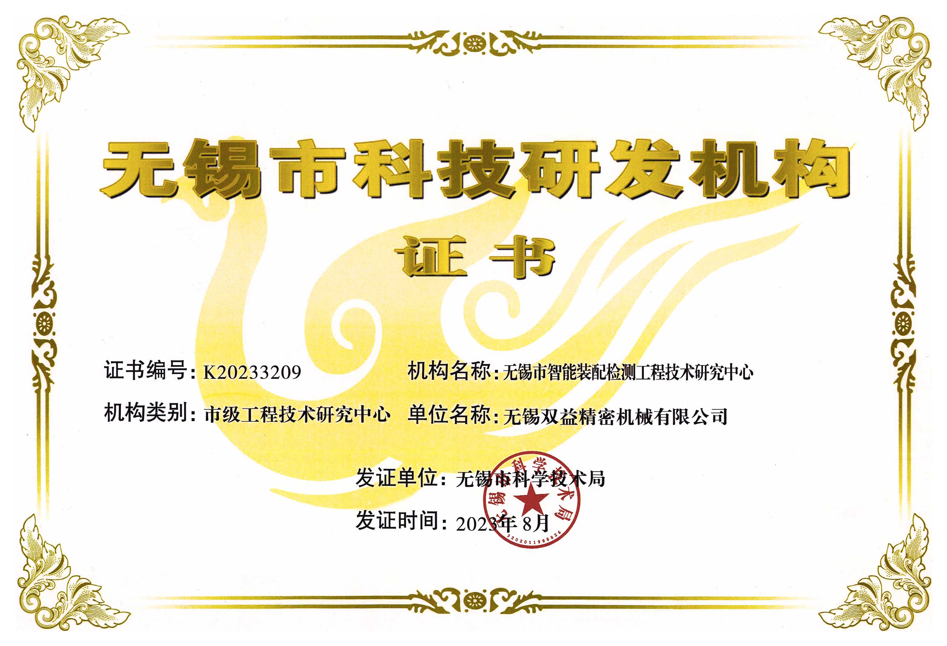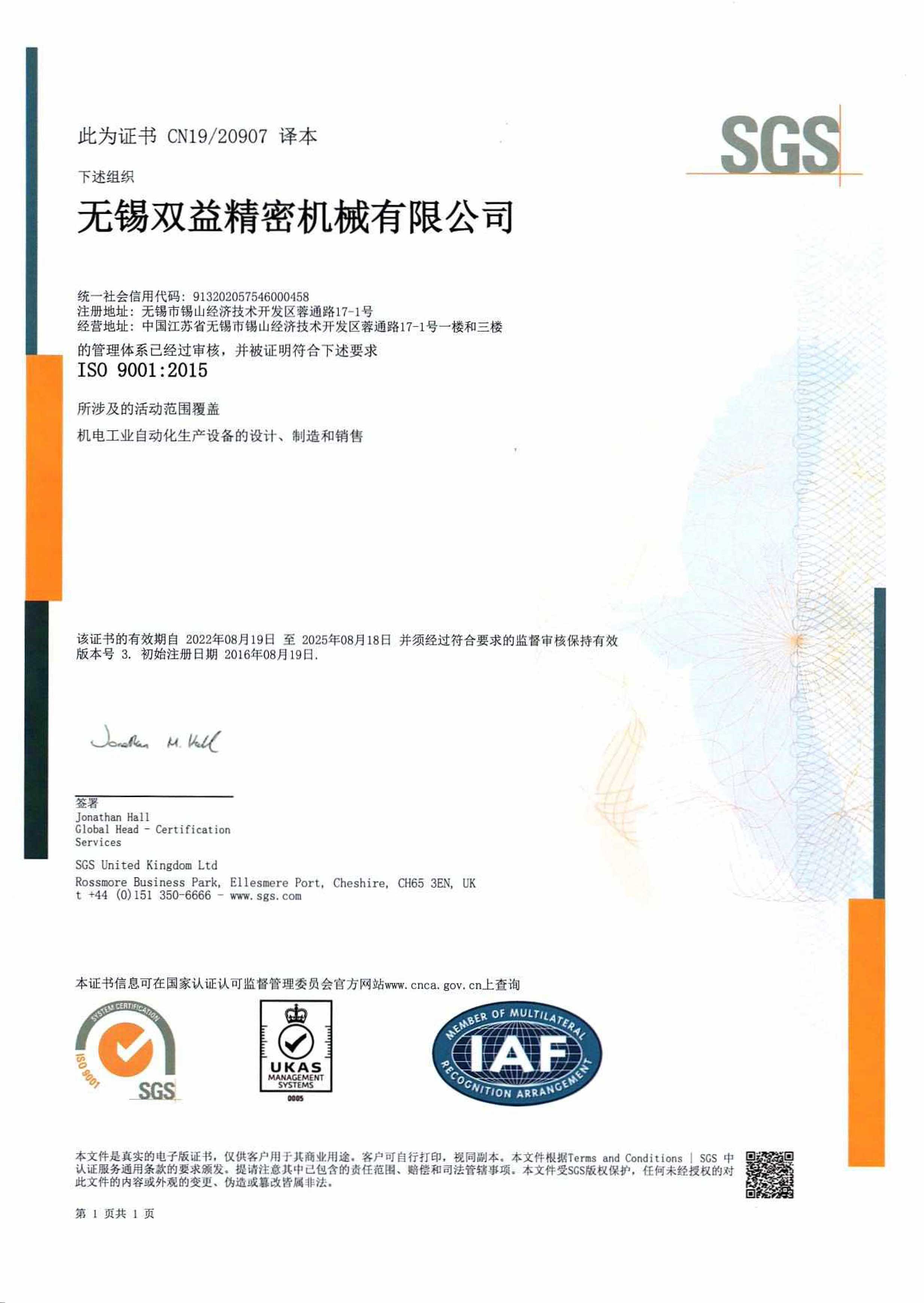 雙益精機(jī)高度重視品質(zhì)管理,已通過 S G S公司的質(zhì)量體系認(rèn)證 ISO9001:2015、TUV公司的環(huán)境體系ISO14001:2015,職業(yè)健康安全 管理體系ISO14001:2015,能源管理體系IS050001:2018,以及知識(shí)產(chǎn) 權(quán)管理體系,為客戶提供安全、優(yōu)質(zhì)的產(chǎn)品。同時(shí),公司多次被評(píng)選為 江蘇省民營(yíng)科技企業(yè),并獲得江蘇省人民政府授予的《高新技術(shù)企業(yè)》 稱號(hào)。此外,雙益精機(jī)兩次榮獲浙江省科學(xué)技術(shù)進(jìn)步二等獎(jiǎng),獲得江蘇 省專精特新企業(yè)稱號(hào),同時(shí)被認(rèn)定為市級(jí)企業(yè)技術(shù)中心和市級(jí)工程技 術(shù)研究中心,并被認(rèn)定為市級(jí)保密試點(diǎn)單位。